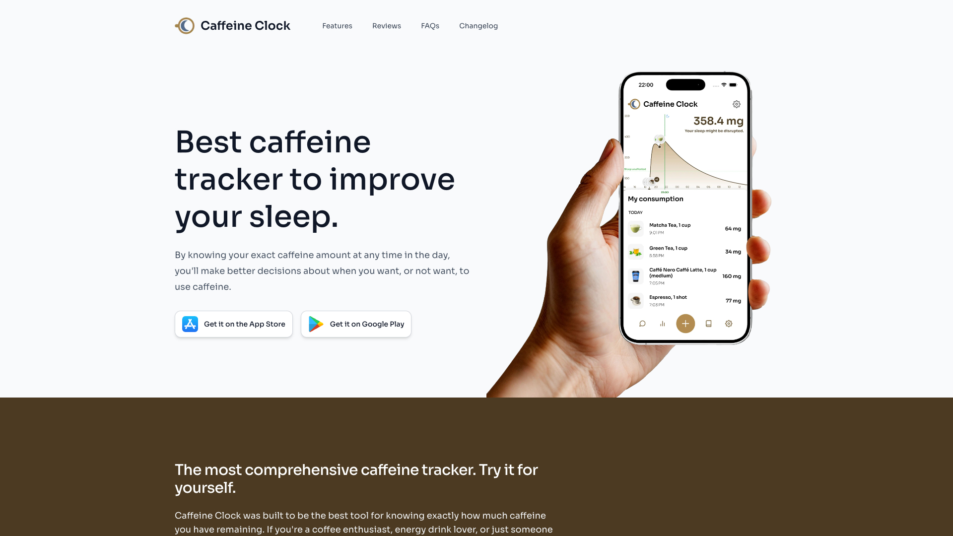 Best caffeine tracker to improve your sleep - Caffeine ClockTrack your caffeine intake with the most comprehensive caffeine tracker app. Know exactly how much caffeine you have at any time with our database of 200+ items. Improve your sleep quality by managing your caffeine consumption effectively.