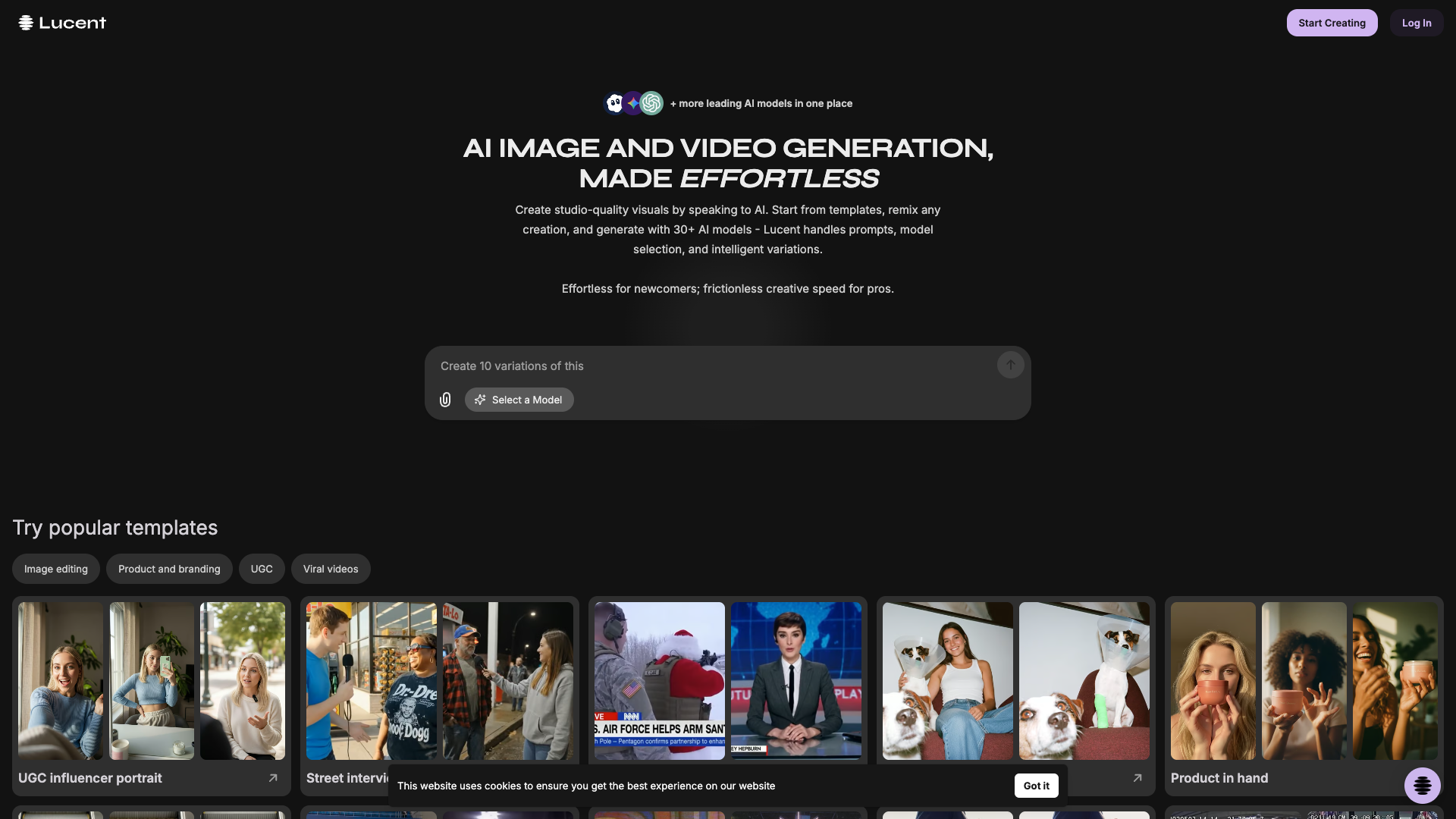 Lucent Chat | All-in-One AI Creative Workspace - Powered by ChatTransform your conversations into stunning visuals with Lucent Chat. Chat with AI to generate images and videos instantly. Create, imagine, and bring ideas to life.